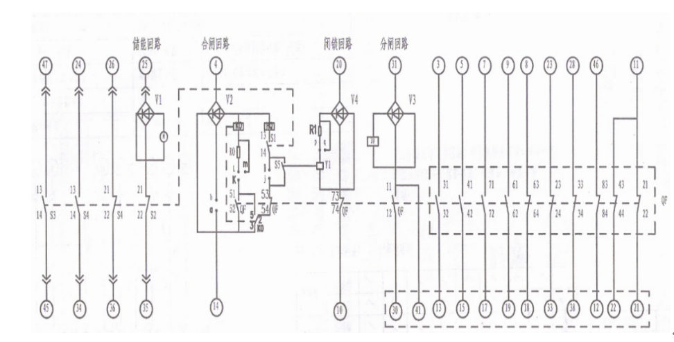 下面為VS1真空開關分合控制接線圖:合閘紅線接(4)、分閘綠線接(31),公共點(14)和(30)短接后接黑線。